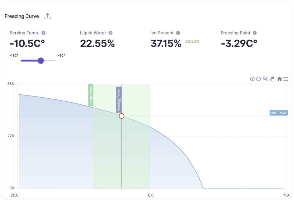 Bilanciamento Avanzato, con separazione tra Grassi Saturi/Insaturi, Oli e Burro di Cacao, calcolo punto crioscopico e grafico della curva di congelamento, Water Control Index.
